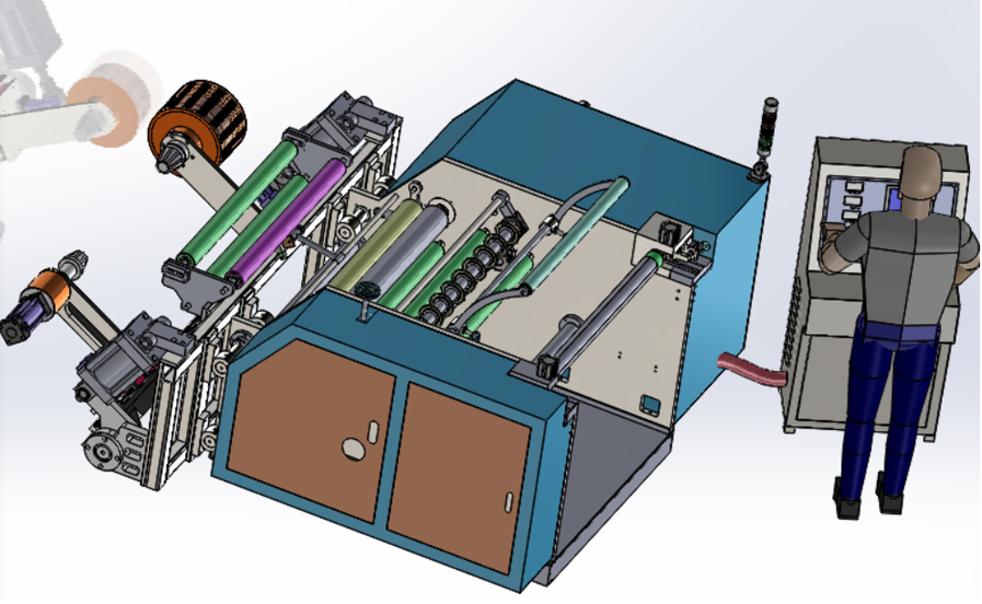 7、臥式機型,放卷、卷取不在同一側,并配置PLC總控制屏,操作靈活方便;