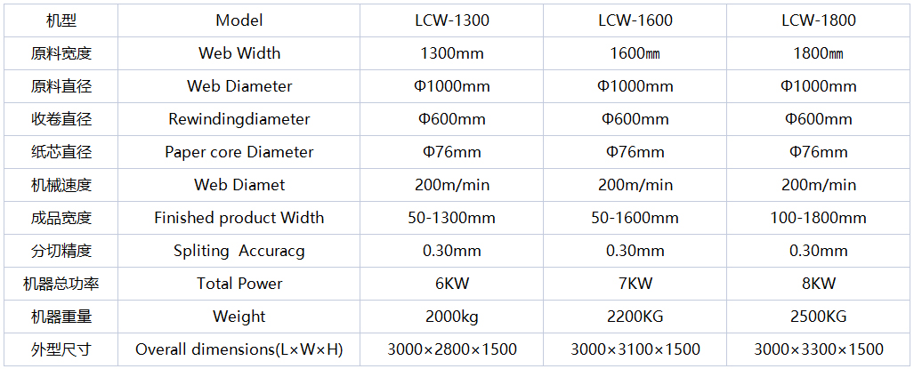 該機適用于PET、CPP、PE、PS、PVC及各種紙卷、無紡布的分條作業(yè)及復卷之用,是造紙、塑料及印刷包裝行業(yè)中的理想設備。